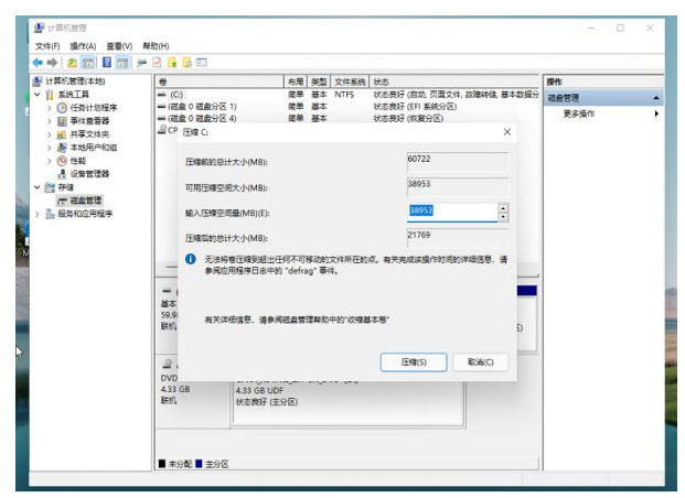 4、此時電腦能夠得出壓縮空間的數值,然后自行輸入需要的壓縮空間,點擊壓縮。