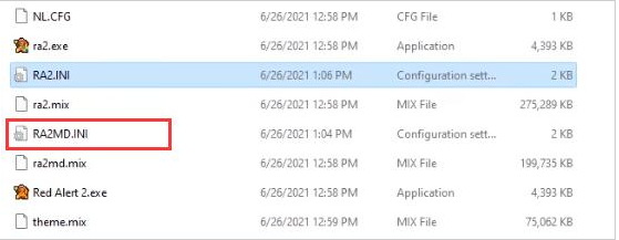 2、打開游戲的安裝目錄,雙擊打開“RA2MD.INI”配置文件;