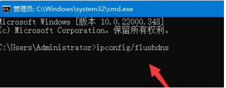 2、此時進入到命令提示符窗口,輸入 ipconfig/flushdns 刷新 DNS 緩存,按回車鍵就可以啦。