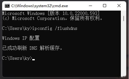 1、打開命令提示符窗口,輸入命令刷新 DNS 解析緩存;