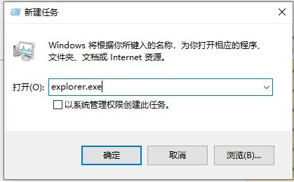 4、輸入“explorer.exe”,并且勾選下方管理權限,點擊確定即可。