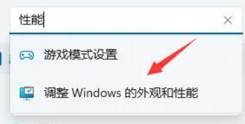 2、在搜索框輸入性能,點擊“調整windows外觀和性能”。