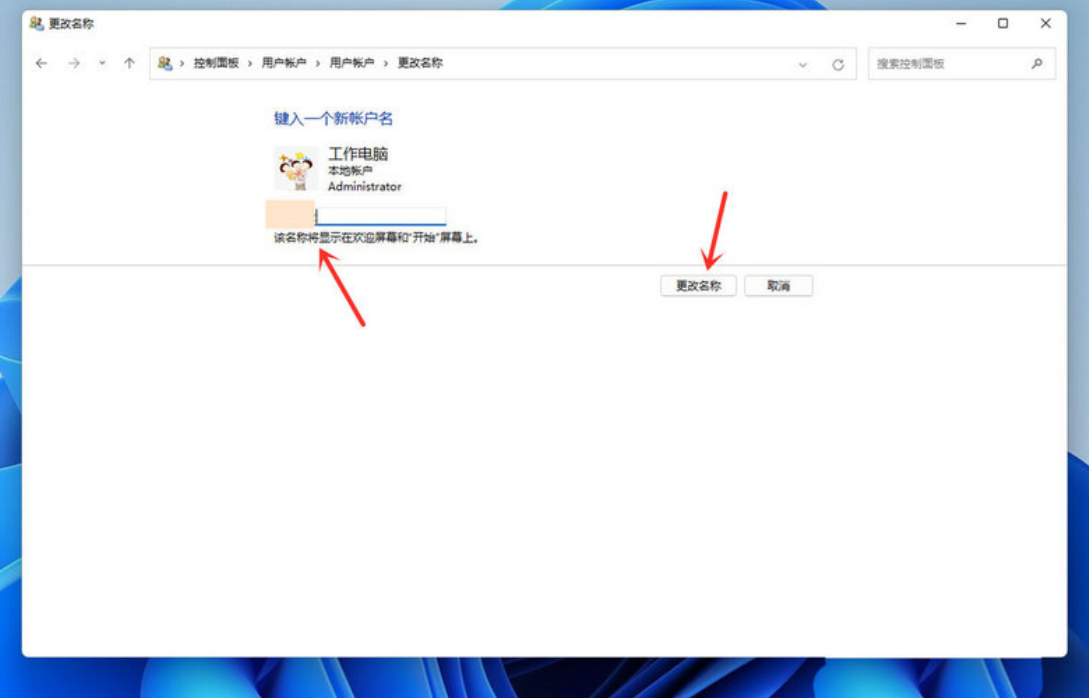 5、接下來輸入自己想要的用戶名稱,點擊【更改名稱】即可。