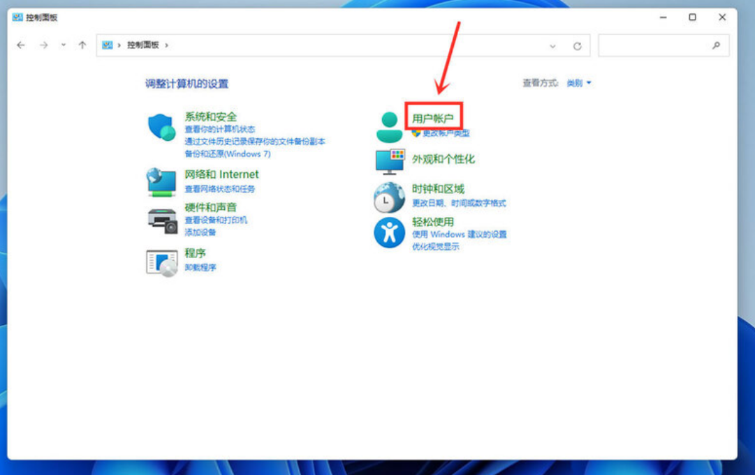 2、在用戶帳戶設置內點擊【用戶帳戶】。