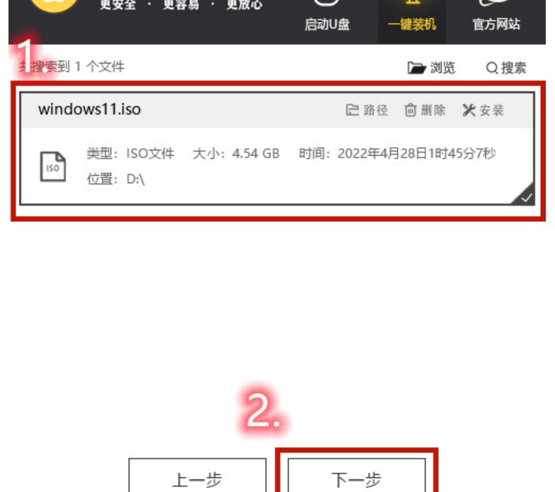 4、工具會檢測到我們之前已經下載好的win11系統。