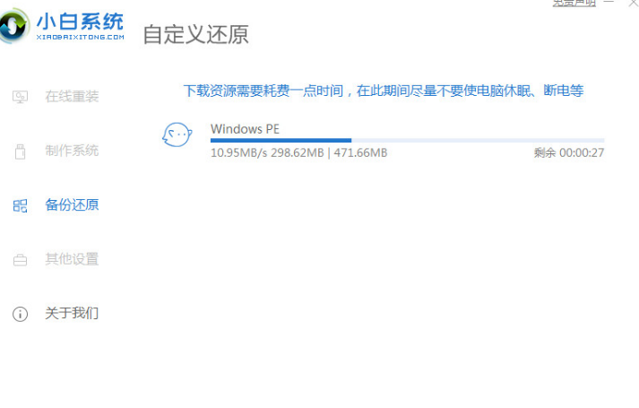 3、下載小白一鍵重裝系統工具,下載后打開運行,在備份還原中點擊“自定義還原”,在打開的界面中找到win11鏡像文件再點擊下一步。