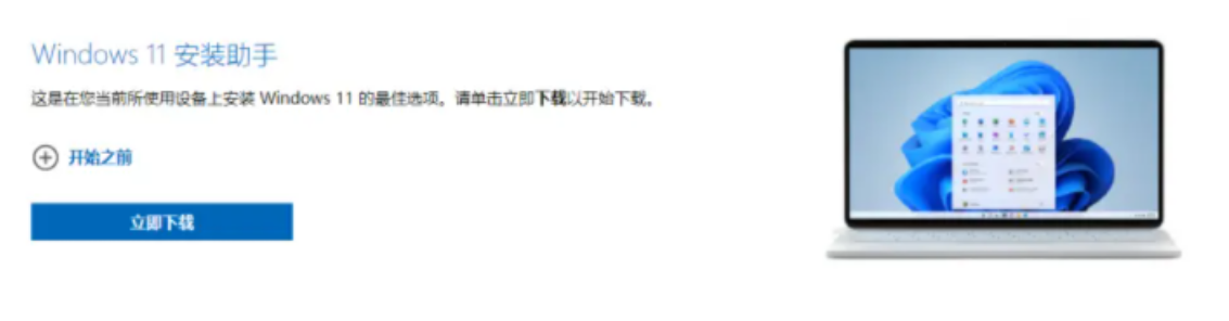 1、打開微軟官網找到Windows11安裝助手點擊下載安裝。