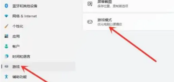2、點擊左側欄“游戲”,進入“游戲模式”即可。