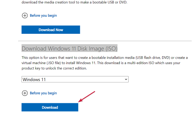 1.首先我們百度搜索微軟官網,然后轉到官方的 Windows 11 下載頁面,然后單擊下載 Windows 11 磁盤映像 (ISO)下的選擇下載,然后選擇Windows 11