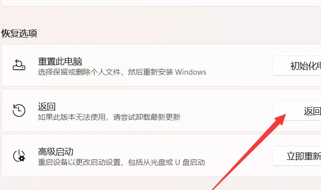 總結:打開設置,點擊Windows更新,找到高級選項,點擊恢復原系統。
