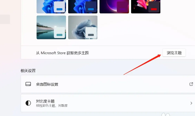 2、在主題圖片下面有一個主題,點一下,往下拉能看到有一個瀏覽主題選項,點進去就會進入對應的主題應用界面。