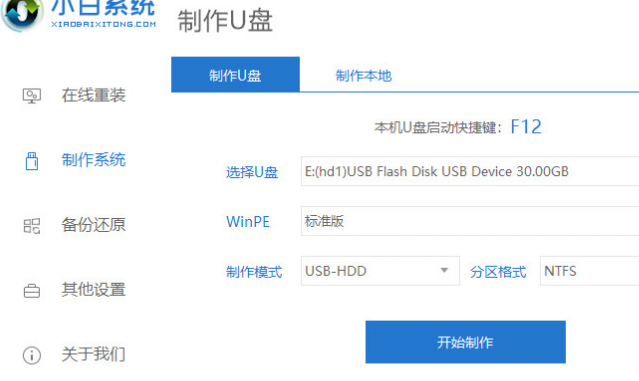 1、先安裝系統工具,插入U盤,打開工具點制作U盤。