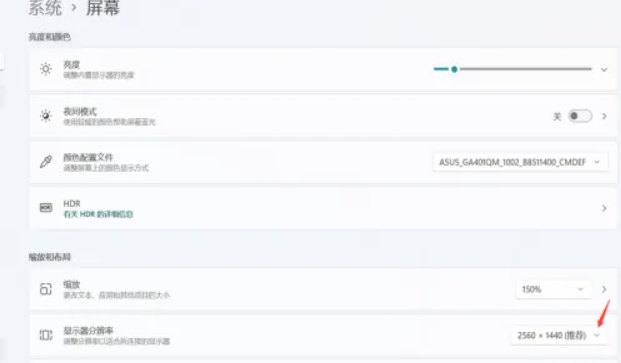 20在屏幕設置界面中,找到縮放和布局欄下的顯示器分辨率,點擊分辨率的倒三角標志。