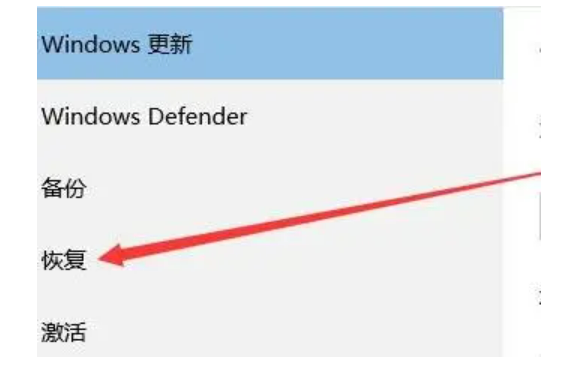4、進入“更新與安全”設置窗口后,再點擊左側的恢復。