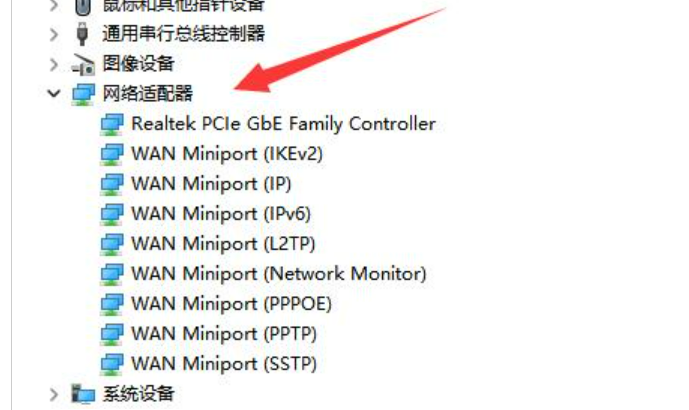 3、打開后,展開“網絡適配器”,找到網卡設備。