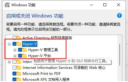 5、在其中我們勾選開啟“Hyper-V”并點擊確定保存就可以啦。