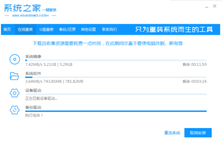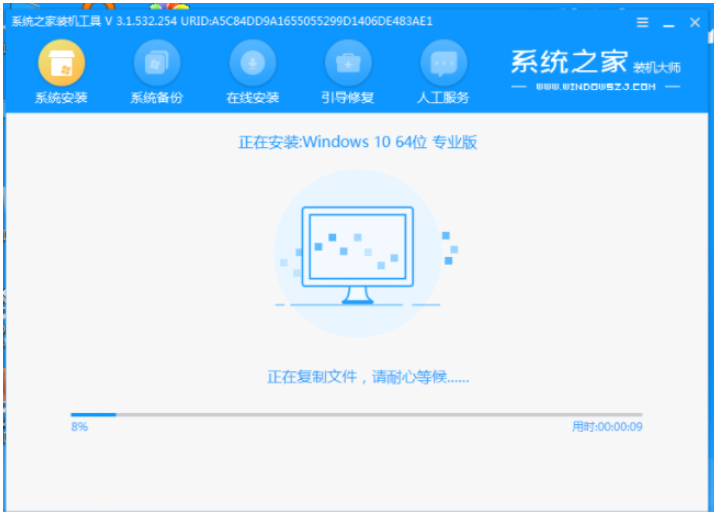 5.電腦進入pe系統后,系統之家裝工具將會自動開始安裝win10系統。
