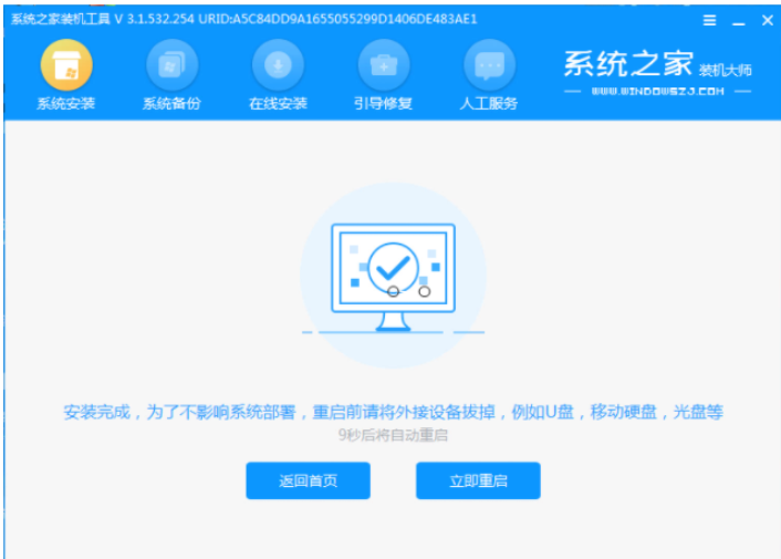 6.系統安裝完成后,再次點擊立即重啟。