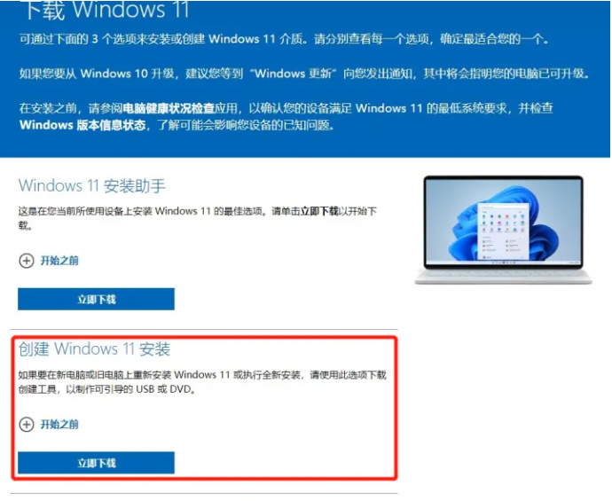 3、在滿足配置要求的情況下,我們才能使用微軟官方工具安裝。首先進入微軟官方的windows下載地址(microsoft.com/zh-cn/software-download/windows11/)。小編推薦使用第二種方式(下圖標記處),點擊下載。