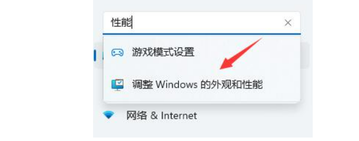 3、然后在搜索框中搜索“性能”進入“調整Windows的外觀和性能”。