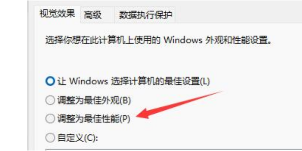 進入“調整Windows的外觀和性能”;在視覺效果下方勾選“調整為最佳性能”。