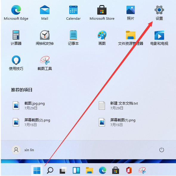 1、首先在win11桌面上打開菜單欄,點擊設置。