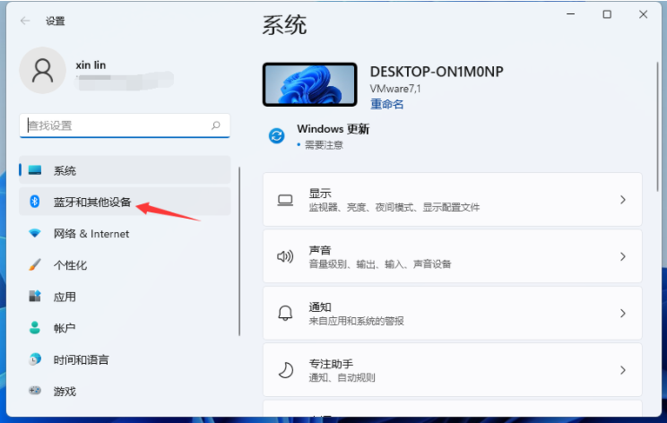 2、在彈出菜單欄界面里,點擊藍牙和其它設備。