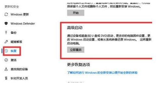 6、退出賬戶之后即可點擊“更新和安全”選擇恢復高級啟動了。