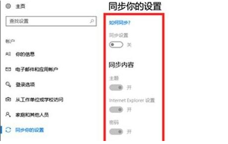5、在電腦的設置中選擇賬戶,將所有可以同步的設置都全部關閉即可。