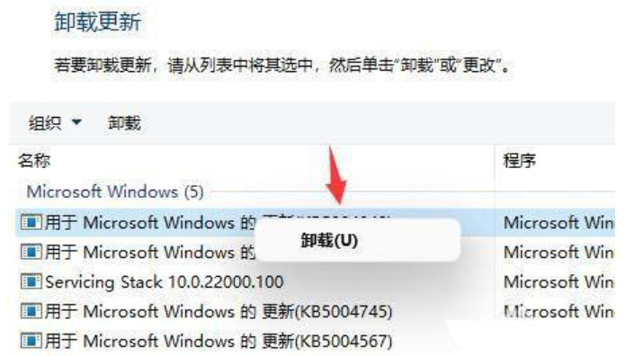 6、找到最近更新的更新文件,并右鍵選中它,點擊“ 卸載 ”就可以解決不斷刷新問題了。
