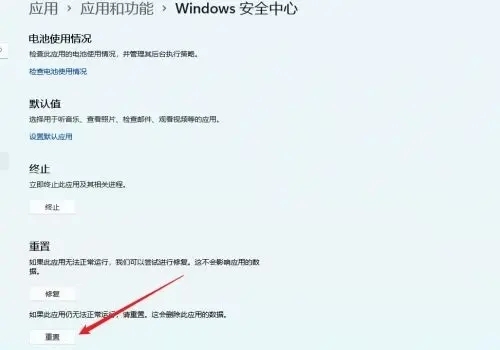 3、在高級選項界面中找到【重置】按鈕,點擊即可。