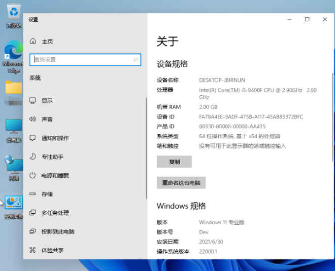 2、在打開的屬性中,就可以直觀地查看處理器(CPU)、內存等核心硬件信息。