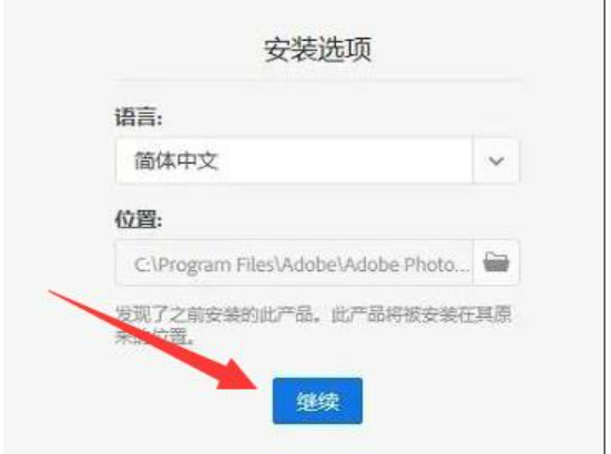 3、接著選擇語言和安裝位置,點擊“繼續”即可。