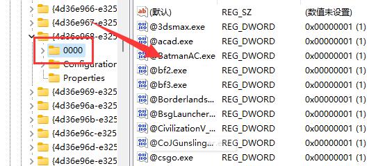 3、點擊進入“計算機\HKEY_LOCAL_MACHINE\SYSTEM\ControlSet001\Control\Class\{4d36e968-e325-11ce-bfc1-08002be10318}”