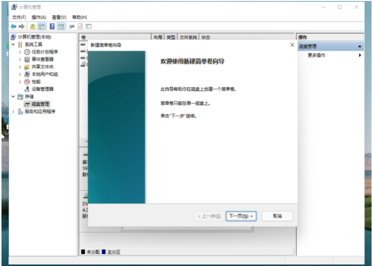6、大家根據新建簡單卷向導,點擊下一步繼續。