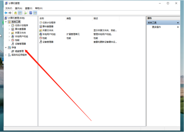 2、在打開的計算機管理窗口界面,鼠標點擊磁盤管理打開。