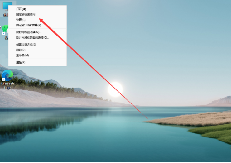1、首先點擊登錄win11系統的桌面之后,鼠標右鍵點擊此電腦圖標,點擊管理進入其中。
