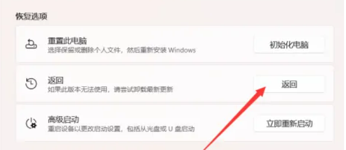 4、找到并點擊返回即可退回到win10版本。