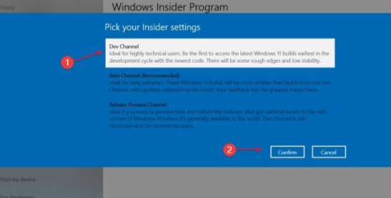 10.在Dev Channel或Beta Channel之間開展選擇。建議選擇第一個選項,隨后點一下Confirm。