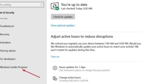 6.往下滾動并點擊左邊視圖中的Windows Insider Program。