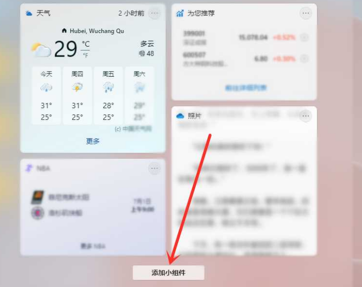 2.打開界面以后,找到并點擊添加小組件按鈕。