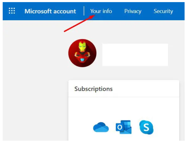 2、點擊右邊的“Your info”,再點擊“Manage my Microsoft account”。