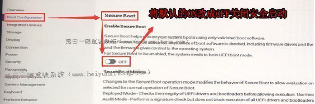 2、接著,點擊切換左側的“Boot Configuration”選項,找到其中的“Secure Boot”并將其設置為“off”。