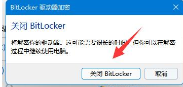 4.點擊“關閉bitlocker”,就可以解除加密了。