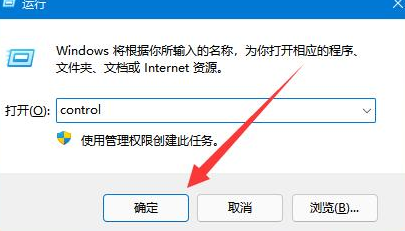 2.打開運行后,在其中輸入“control”并點擊“確定”打開控制面板。