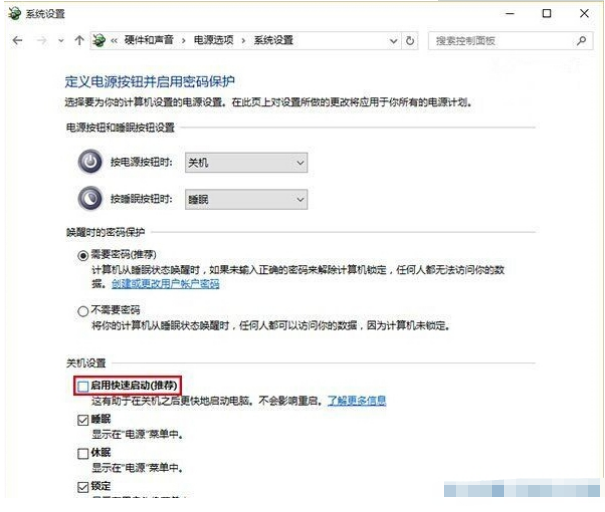 6、取消勾選 ,快速啟動前的復選框然后保存設置即可成功解決。