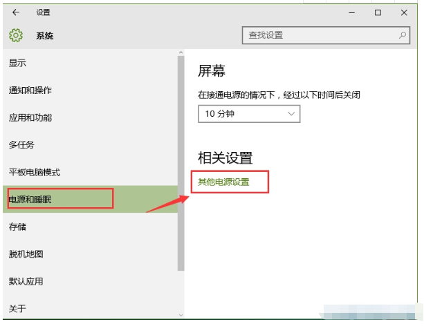 3、點擊“電源和睡眠”,點擊“其他電源設置”;