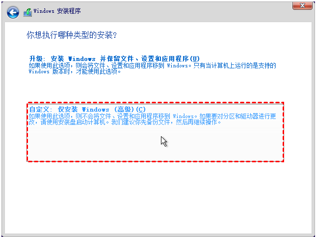 4、輸入產品密鑰(若沒有,則選擇“我沒有產品密鑰”),然后選擇“自定義:僅安裝Windows(高級)”。