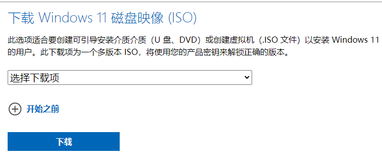 1、我們需要進到微軟Win11下載界面下載創建Windows 11可引導媒體的工具。然后啟動工具,根據操作提示創建可引導的U盤或DVD進行安裝。