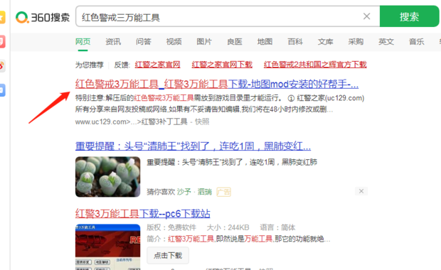 1、win11紅色警戒3如何安裝mod,360 搜索紅色警戒三萬能工具。
